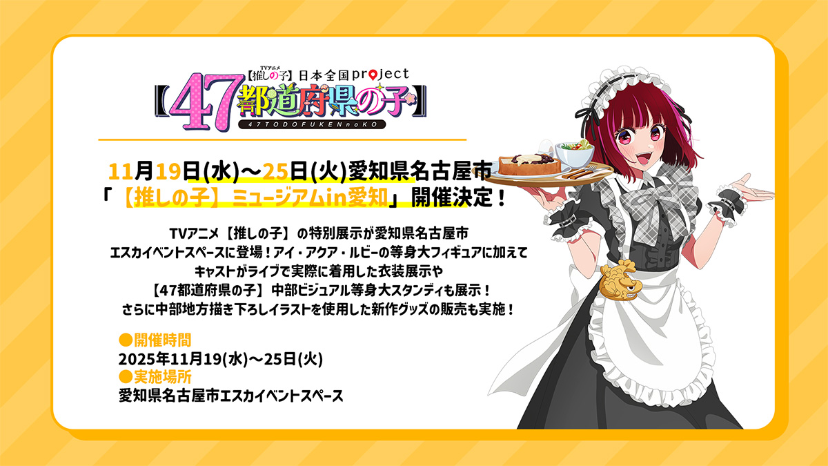 11月19日(水)~25日(火)愛知県名古屋市エスカイベントスペースにて「【推しの子】ミュージアム in 愛知」開催決定!