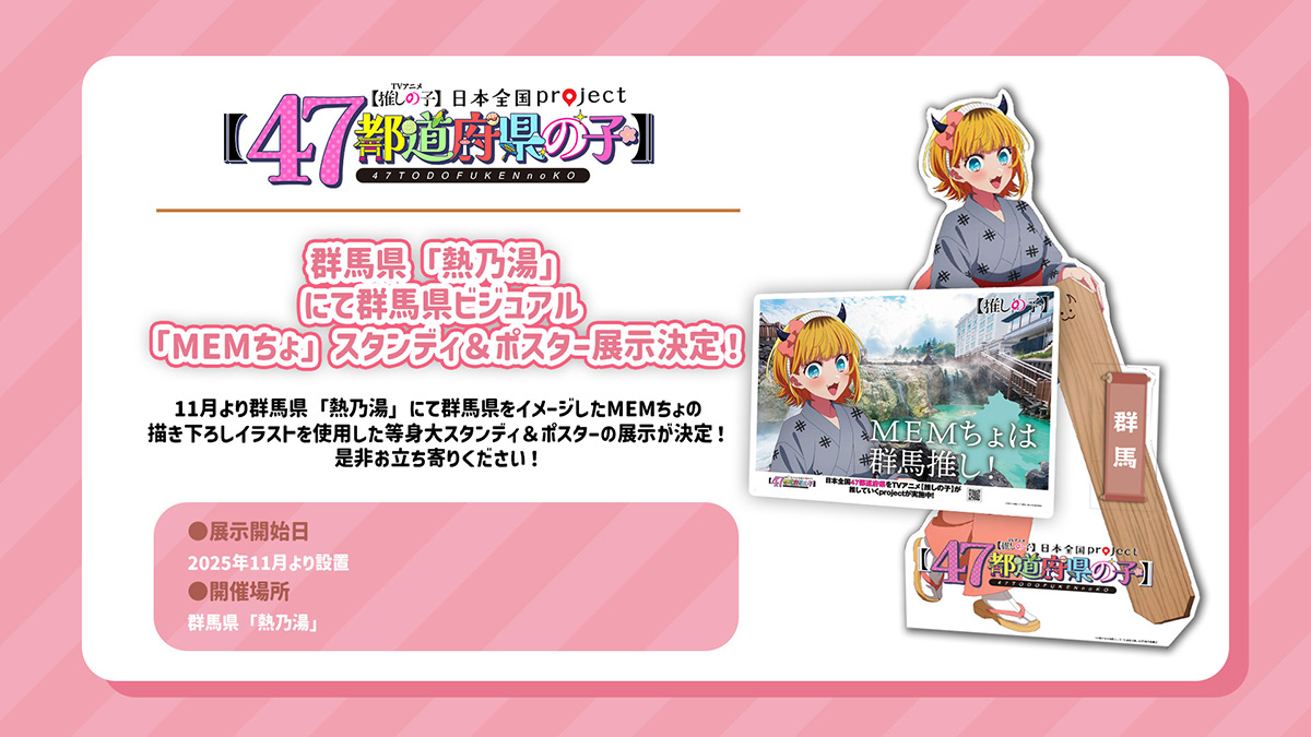 11月から「熱乃湯」にて群馬県をイメージしたMEMちょの描き下ろしイラストを使用した等身大スタンディ&ポスターの展示が決定!是非お立ち寄りください!
