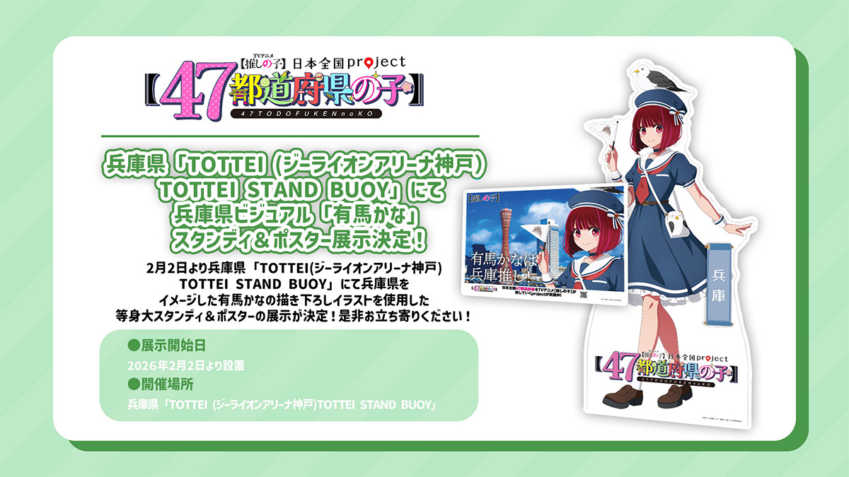 兵庫県「TOTTEI (ジーライオンアリーナ神戸) TOTTEI STAND BUOY」にて兵庫県ビジュアル使用スタンディ&ポスター展示決定!