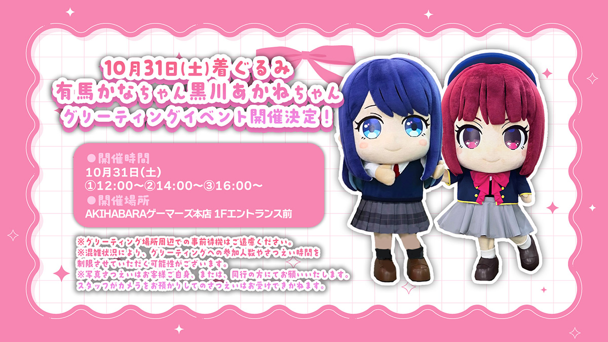 AKIHABARAゲーマーズ本店にて着ぐるみ「有馬かな」&「黒川あかね」によるグリーティングが開催決定!