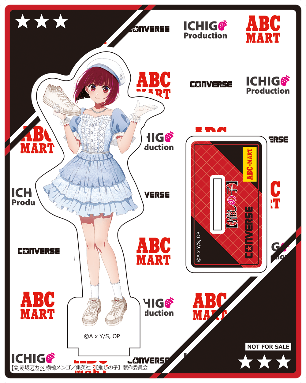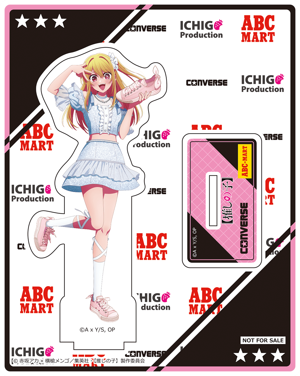 一部のABC-MART店舗および公式オンラインストアにて、TVアニメ『【推しの子】』×CONVERSEのコラボレーション商品をご購入いただいた方に、購入モデルに対応したキャラクターのアクリルスタンドをプレゼント。